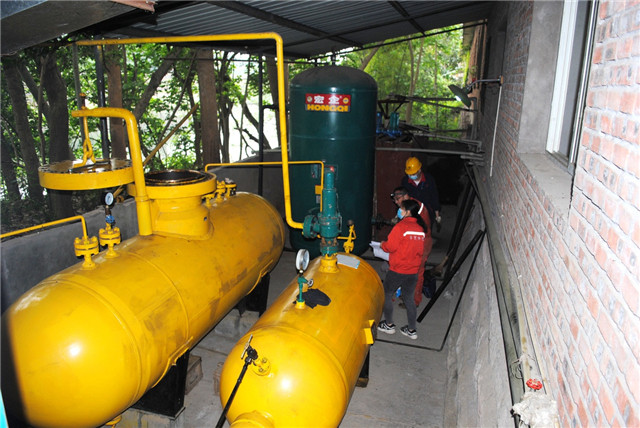 为了配合特检员的工作,在公司安全技术环境保护处廖君处长的指挥和动力车间主任廖明志的安排下,机修组钳工师傅提前到空压机房,把储气罐上的检测口盖取下,并配合市特检员开展检测工作。