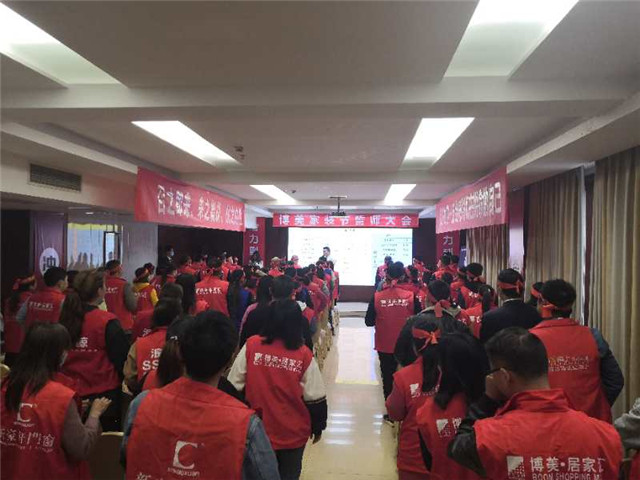 为了备战本次促销活动,鼓舞商家士气,让商家系统学习营销知识,同时让商家及其工作人员熟悉整个活动流程,以便更好的为消费者提供服务,博美居家汇﹒仪陇商场也于近日召开“五装全城”-博美家装节促销活动全员启动大会。