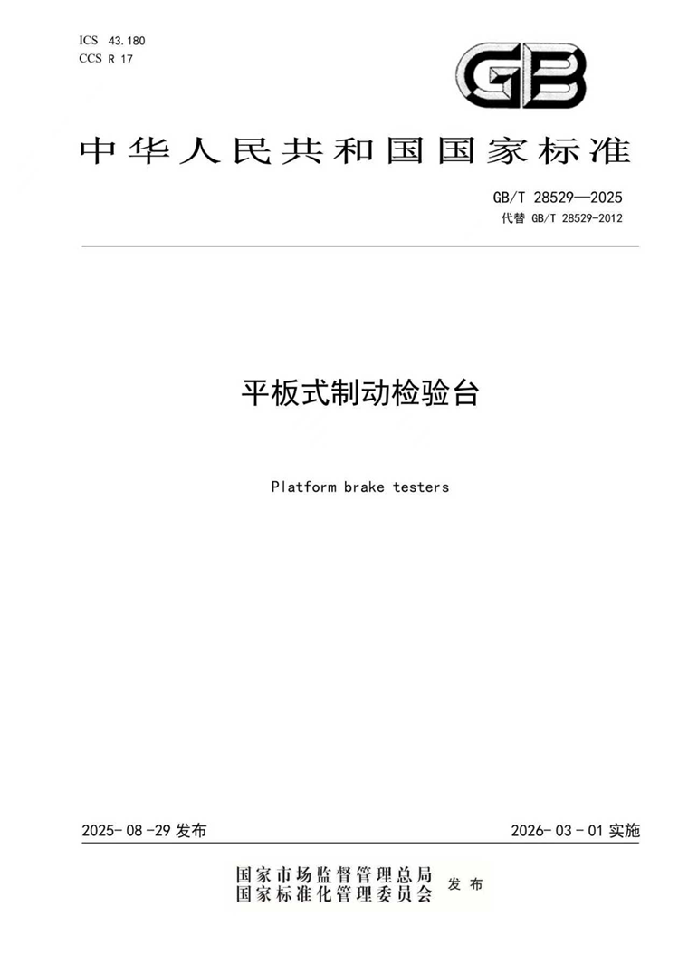 标准化建设是成都成保下半年的重点推进工作。由公司作为第一起草单位主导修订的国家标准《平板式制动检验台》(GB/T 28529—2025),已于今年8月29日正式发布,并将于2026年3月1日起实施。该标准针对平板式制动检验台的技术要求、检验方法、检验规则等关键内容进行了系统规范,其创新提出的平板式制动检验台的数据采集响应时间、同步性车速监测、整车制动率重复性要求以及试验方法均达到了国际先进水平。此项标准的发布与实施,将进一步统一行业内平板式制动检验台的生产与检测标准,为道路交通安全提供更加科学、可靠的技术保障。
