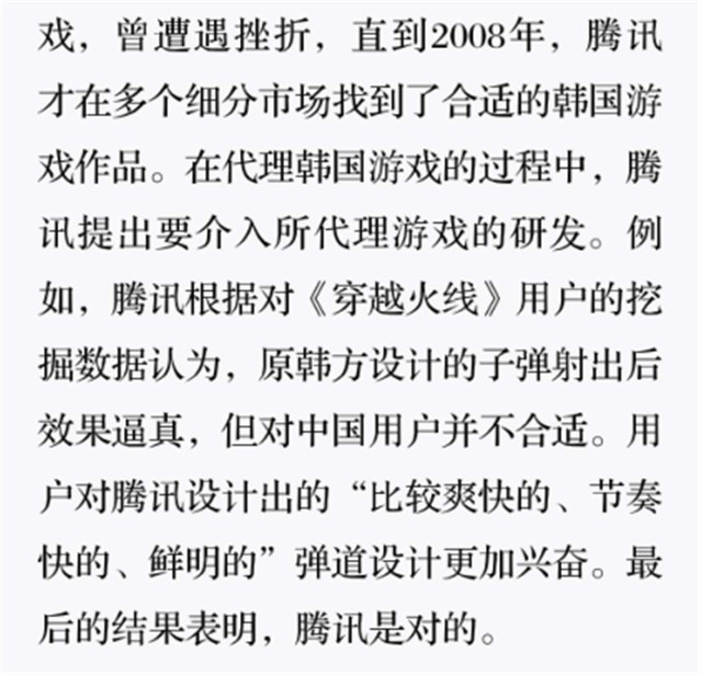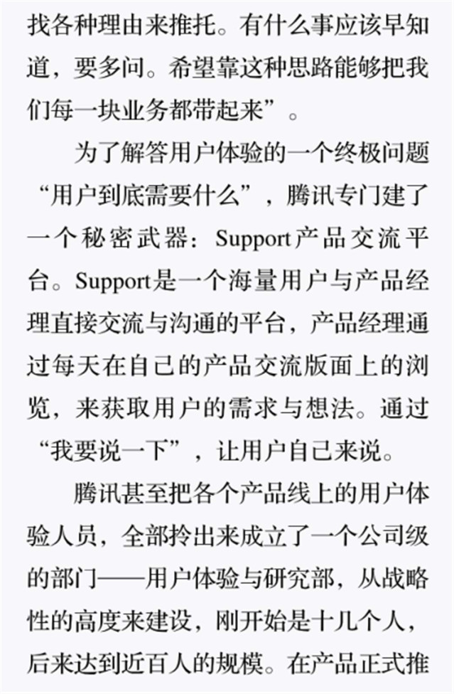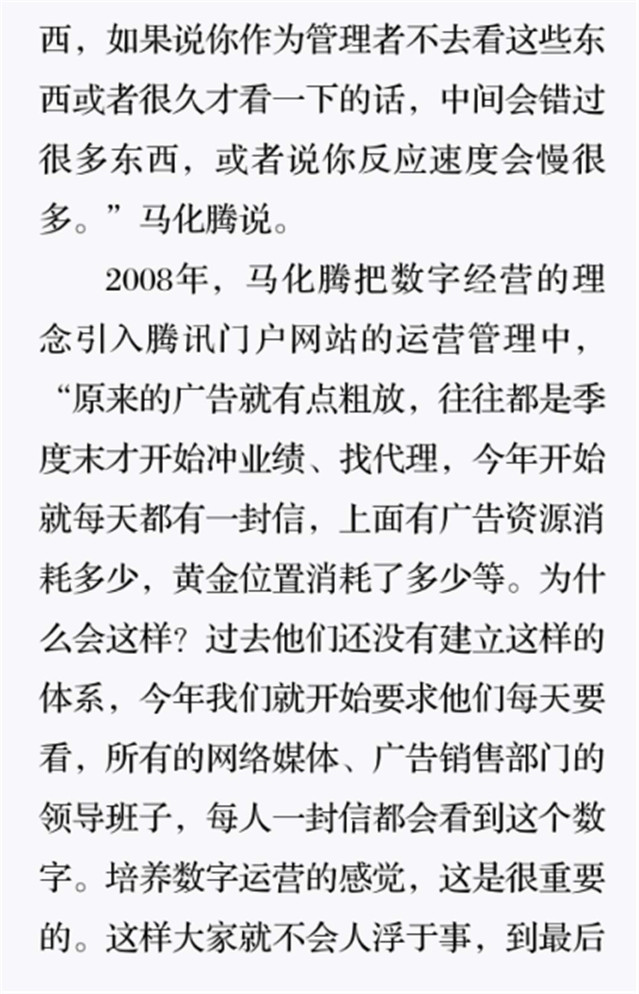 深读之后发现,其实全书真正的核心在于透过腾讯可以观察到的中国企业逻辑,其中很多基于国情而诞生的特殊能力,过去或受诟病或被追捧,而本书作者可以以更加客观的姿态对其进行分析,这无疑是一种当代创业者和企业家应当学习的姿态和能力。