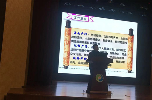 其次由食品安全专家肖学文进行《餐饮企业食品安全应急管理》培训讲解。培训强调,民以食为天,食以安为先。食品安全直接关系到人民群众的身体健康和生命安全,参会企业要认清形势,切实增强维护食品安全工作的责任感;要敢于担当,切实担负起食品安全的主体责任;要做好服务,共同促进食品产业健康发展,让人民群众吃得安心、放心,不断提升人民的幸福指数。