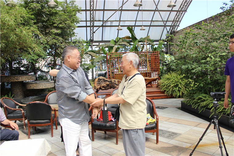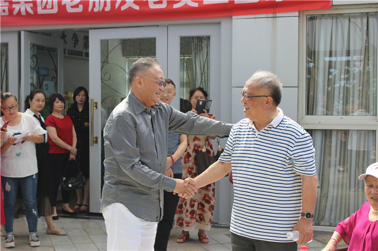 禾嘉集团董事局主席夏朝嘉与老朋友老员工亲切握手