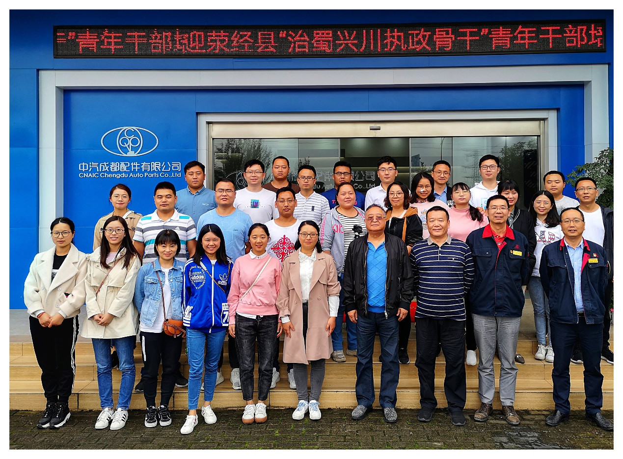 本网讯(李晓清报道)2019年9月24日下午,雅安市荥经县“治蜀兴川执政骨干”青年干部培训班学员一行29人,来到中汽成都配件有限公司(以下简称中汽成配)参观交流。禾嘉集团董事局主席夏朝嘉发表了热情洋溢的讲话,他的禾嘉创业传统教育迎得了学员们由衷的敬佩并不断报以阵阵的掌声。